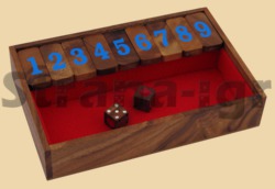 Размер 5 на 15 на 23,5 см Размер фишки 2,5 на 6 см Материал - тропическое дерево Смысл игры - с помощью кубиков выбрасывать определённый числа, кто первым перевернёт все фишки, тот и выиграл Производитель Индонезия