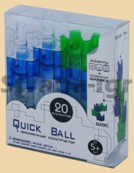 Q-ball Maze или QuickBall - динамический конструктор из пластиковых деталей где нужно строить замысловатые спуски и трассы, по которым будут спускаться металлические шарики. QuickBall (Квик бол) из 20-ти элементов подходит для начала, затем можно расширить игру, докупив еще один или несколько наборов. В каждом наборе 20 пластиковых кубиков для построения трассы и 8 металлических шариков. Детали конструктора похожи на красивые стеклышки цветных бутылок, приятное сочетание зеленого, синего и прозрачного расслабляет и успокаивает. Из этих пластиковых элементов собирается сложная 3D-конструкция, сверху которой запускаются металлические шарики. Под действием гравитации шарики катятся вниз по сложным траекториям, ускоряются, замедляются, выписывают пируэты. За этими движениями можно наблюдать бесконечно. Конструктор содержит мелкие шарики, которые от малышей лучше спрятать подальше - возраст 5+!