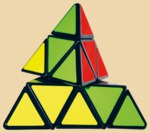 Известная механическая головоломка с 4-мя сторонами разного цвета. Предшественник кубика Рубика (появилась раньше!). Цель - собрать все элементы одного цвета на одной стороне. Пирамидка представляет собой геометрическое тело тетраэдр. Как и кубик Рубика, она состоит из элементов, которые при повороте граней могут перемешаться с грани на грань, только роль кубиков здесь выполняют маленькие тетраэдры, из которых и сложен большой тетраэдр. Пирамидка похожа на кубика Рубика, однако значительно проще и для сборки потребуются другие алгоритмы. Каждый поворот - это вращение элементов вокруг одной из 4х осей головоломки на 120 градусов.