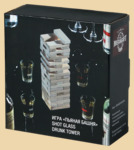 Размер 19,5 на 20,5 на 7,5 см Материал брусков - бук (на самих брусках нет никаких надписей) Материал стопок - стекло, на стопках нанесены надписи на английском языке, 2 красным цветом, 2 белым цветом Бук – представитель лиственных пород деревьев, произрастающий в умеренных широтах Европы, Азии и Северной Америки. Бук наряду с дубом относится к ценным породам дерева. Древесина бука сходна по некоторым физико-механическим свойствам с дубовой. Имеет красивую текстуру, белую с желтовато-красным оттенком окраску. Она прочная, плотная, твердая, достаточно легко гнется, режется, обрабатывается лаками и красками. Производитель Китай
