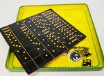 Размер коробки 15*15 см (коробка металлическая) Размер фишки для игры в домино 15 на 27 мм, толщина 2 мм Материал коробки в котором хранится домино - металл, материал фишек для домино - вспененный материал посередине, магнитный материал снизу, ламинированная бумага с изображением домино сверху Производитель Китай