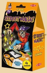 Набор фокусов «Уличная магия» (оранжевый) понравится маленьким любителям фокусов и магии. Ребенок сможет устроить грандиозное представление перед Вашими или своими друзьями. Фокусы понравятся и детям, и взрослым – все будут под впечатлением от эффектных и удивительных фокусов! Кроме того, в процессе подготовки и показа фокусов ребенок сможет получить много полезных навыков. Например, потренирует ловкость рук, координацию и четкость движений, мелкую моторику. А выступление перед зрителями поможет не бояться публичных выступлений в будущем. С оранжевым набором фокусов «Уличная магия» можно сделать такие фокусы, как «Веселая коробка», «Веселая табличка», «Веселый трюк с большим пальцем» и «Веселые карточки с животными». Фокус «Веселая коробка» поразит зрителем колдовской силой фокусника – в коробке то и дело будут появляться разные предметы. «Веселая табличка» превратит грустного человека в самого веселого на свете. Зрители увидят исчезновения предметов в фокусе «Веселый трюк с большим пальцем» и волшебным образом узнают животных, нарисованных на «Веселых карточках с животными».