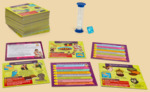 Состав игры: - коробка, она же сундучок, - 56 карточек, - 1 карточка с инструкцией и пояснениями, - песочные часы, - кубик - правила игры