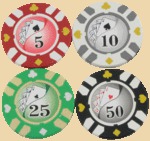 Фишки для игры в покер 100 шт, по 14 грамм Диаметр фишек 39 мм Номинал фишек 5$-25 шт, 10$-25 шт, 25$-25шт, 50$-25 шт, Фишки выполнены из керамики, на обоих сторонах нанесены высококачественные голографические наклейки с номиналом фишек Две колоды карт с пластиковым покрытием, по 54 листа в колоде, покерный размер, увеличенный индекс "Кнопка" дилера Кубики 5 шт Алюминиевый дипломат Размер 6,5 на 19,5 на 20 см Производство Китай