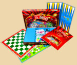 Размер упаковки 37 на 22 см, высота 4 см В набор включены 55 различных игр 55 лучших игр со всего мира в одной коробке. Здесь Вы найдете: мемо и карточные игры, шахматы и шашки, нарды, различные игры-бродилки и игры с кубиками. Все игры входящие в комплект очень разнообразны. Будут интересны как детям, так и их родителям. Комплектация: - игровые поля (двусторонние) 3 шт.; - шашки 32 шт.; - наклейки на шашки (шахматы) 32 шт.; - кубики 2 шт.; - фишки четырех цветов по 8 шт. каждого цвета; - карточки домино 28 шт.; - парные карточки 30 шт.; - правила 1 шт. Производитель Россия