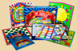 Комплектация: - игровые поля (двухсторонние) 6 шт.; - шашки 32 шт.; - наклейки на шашки (шахматы) 32шт. (8 наклеек в рамках запасные); - кубики с точками 3 шт; - кубики цветные 2 шт.; - фишки (красные, желтые, зеленые, синие) по 16 шт. каждого цвета; - фишки (оранжевые и фиолетовые) по 10 шт. каждого цвета); - жетоны 13 шт.; - колпачки четырех цветов 12 шт.; - "батут" сборный из картона 1 шт.; - катапульты 4 шт.; - парные карточки маленькие 26 шт.; - парные карточки большие 30 шт.; - правила 1 шт. Производитель Россия