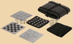 Размер 10 на 10 см, толщина 3 см В набор включены следующие игры: шашки, крестики-нолики, мельница Материал металл, упаковка из кожзама Производитель Китай
