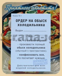 Холодильник – место сугубо личное. И потому проникать туда можно только с санкции хозяина кухни. Этот магнит призван освободить хозяев от лишних хлопот связанных с почетной обязанностью разрешать гостям посягать на самое ценное в доме – на еду.