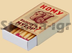 Лучший подарок для двоих - это, несомненно, любовь, согласие и хорошая погода в доме. Но бывает так, что из-за мелких ссор и споров погода портиться, чувства тускнеют, согласие куда-то испаряется, а романтики становятся реалистами или даже циниками. Чтобы этого избежать, конфликты надо решать с умом. Один такой способ - это спички антиконфликтные "Кому выносить мусор". Они забавные и многофункциональные. Ведь такие, казалось бы, незначительные домашние и интерьерные вещицы, как оригинальные магниты, таблички и прочие мелочи способны, поднять настроение и примирить хоть и любимых, но таких упрямых спорщиков. Форма выпуска: коробок с короткими и длинными спичками.