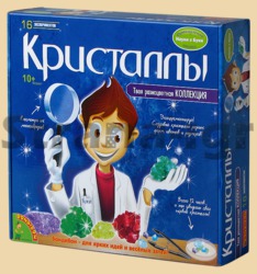 «Кристаллы» - это настоящая химическая мини-лаборатория в одной маленькой коробке. Игра подойдет не только самым любознательным, но и очень усидчивым ребятам, ведь на выращивание одного кристалла порой требуется до 12 часов! А для самого большого кристалла может потребоваться даже целая неделя. Набор содержит все необходимое, чтобы малыш мог вырастить настоящие разноцветные кристаллы. Соль, сахар, некоторые виды кислот и различные соединения, позволяющие экспериментировать с формой и цветом кристаллов.