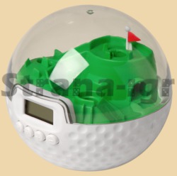 Будильник Шар гольф представляет собой сферу, внутри которой построено импровизированное поле для гольфа. Рано утром будильник начинает звонить, необходимо продрать глаза и попытаться закатить шарик в лунку, после таких манипуляций любой сон уходит прочь. Аплодисменты зрителей и +1 к гольф-скиллам обеспечен. Кроме режима будильника доступен режим демо игры, можно просто играть в гольф, раз за разом закатывая шар в лунку. Будильник Шар Гольф - замечательный подарок, который сделает Ваше утреннее пробуждение приятнее.