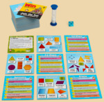 У этих карточек действительно весьма необычные рубашки. Во-первых, все они разные, во-вторых, изображения на них объединены какой-то темой. Например, одна показывает, каким бывает периметр различных фигур, другая учит описывать положение вещей в пространстве, третья объясняет понятия угла, четвертая рассказывает о симметрии, пятая — о высоте и так далее. Все выглядит отлично, а главное — вполне понятно. Поэтому вопросы с обратной стороны карточки не доставляют участникам игры серьезных трудностей!