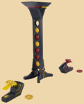 Большая черная башня ставится посредине. Двум участникам выдаются метательные диски и пусковые устройства. Теперь вам нужно хорошенько прицелиться, ловко надавить пальцем на кнопку и попасть кругляшом в воронку башни. Игра делится на матчи: тот, кто забросил свои четыре диска в башню, объявляется победителем раунда. Для полной победы нужно либо три раза сделать своего противника, либо в любом из раундов забросить свои четыре фишки подряд. В комплекте: 10 метательных дисков двух цветов: желтого и красного; 2 пусковых устройства, чтобы весело швырять диски в башню; Башня, которую еще нужно собрать. Возраст 6+ Количество игроков 2 Время игры 20 минут Размер упаковки 32 на 28 см Производитель Ирландия