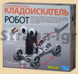 Набор для создания настоящего робота, который умеет искать клады. Соберите из деталей движущегося робота, который управляется с помощью пульта, и отправляйтесь на поиски сокровищ! При приближении к металлическому предмету робот издает звуковой сигнал.