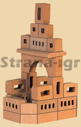 В комплекте: - набор кирпичей (37 шт), - строительная смесь, - детский мастерок, - маленькая миска для разведения смеси, - специальная подставка для постройки, - инструкция для сборки.