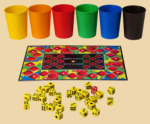 В комплекте: - игральные кубики с нанесенными на грани числами - 31 шт. - игровое поле - 1 шт. - пластиковые стаканчики - 6 шт. - подробное описание правил игры