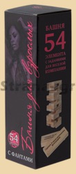 Высота 28 см Размер брусков 7,5 на 2,5 на 1,5 см Размер основания (в собранном виде) 8,5 на 8,5 см В комплекте 54 бруска с заданиями Материал дерево Количество игроков 2-4