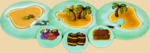 В комплекте: 3 фигурки; 3 подставки; капитанский кубик; пиратский кубик; 7 жетонов островов; 27 жетонов сокровищ; правила.