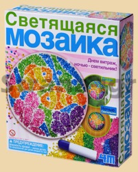 Днем витраж, ночью - светильник! В наборе: Содержимое: 1 абажур, 6 пакетиков разноцветного бисера, 1 тюбик клея, 1 световой модуль, 1 основание, 1 присоска и детализированная инструкция.