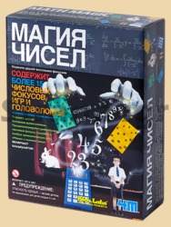 В комплекте: Калькулятор на солнечных батарейках. 2 игральных кубика. Комплект карт с числами для «чтения мыслей». Супермагический квадрат. Набор карточек с числами. 40 математических карточек для игры Memo. Сборная головоломка. Головоломка-перевертыш. Разлинованный лист бумаги. Инструкция на русском языке.