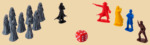 В комплекте: Большое игровое поле; 5 карточек и 13 фигурок героев; 34 жетона здоровья; Жетоны полезных предметов; Игровой кубик; Блокнот для записи передвижений Дракулы; Правила.