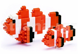 Вопреки названию, рыба-клоун не блещет чувством юмора и знает очень мало шуток. Набор позволяет собрать одну большую рыбу-клоуна, и одну поменьше. Количество элементов: 110 штук. Размер собранной модели: 25 на 60 на 40 мм. Сложность: 3 из 5, средняя. Комплектация: 110 деталей + запасные, площадка-основание 4 на 4 см, цветная схема сборки.