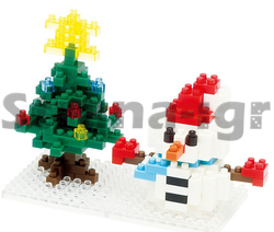 Сразу два символа Нового Года в одном комплекте: мини-версия классического снеговика в компании зеленой "красавицы-елки". Строить снежную бабу, катая комки - любимая уличная забава детей в ясный зимний день. Наш Снеговик не боится оттепели и не займет много места в доме. Построить этого красавца в красном колпаке, с варежками, шарфом и обязательным носом-морковкой можно в любую погоду. Пушистую елочку тоже нужно подготовить к празднику - украсить большой золотой звездой и нарядить игрушками.