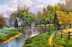 Мозаика (картина) по номерам Дом и старая мельница у реки (40 на 50 см) (арт. 43206)