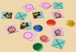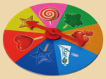 Как играть? Первая игра. Участники устанавливают фишки на игровое поле. Затем по очереди вращают стрелку и передвигают свою фишку по часовой стрелке на ближайшее поле, соответствующее по цвету символу, на который указала стрелка. Победителем становится тот, кто первым проведет свою фишку от старта до финиша.