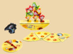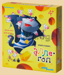 Как играть? Подготовка к игре. Собрать стрелку. Собрать качели. Жетоны перевернуть цифрами вниз и хорошо перемешать. Установить очередность хода. Участникам игры взять по 4 фигуры мышат и кусочек сыра одного цвета. В игру можно играть двумя способами. Первый способ. Первому по очереди игроку установить фигуру кота и одну свою фигуру мышонка на качели. Далее следующий по очереди участник игры вращает стрелку и устанавливает своего мышонка на качели, выполняя условия символа, на который указала стрелка. Во время игры все участники при удачной установке своей фигурки говорят «Алле-гоп!», после чего ход переходит следующему игроку. А если пирамида развалилась, игрок говорит «Алле шлеп!», и кон заканчивается. Второй способ. Первому по очереди игроку установить фигуру кота и одну свою фигуру мышонка на качели. Кусочек сыра с отверстиями также участвует в построении пирамиды. Затем следующий по очереди участник игры вращает стрелку и устанавливает своего мышонка на качели, выполняя условия символа, на который указала стрелка. За каждую установленную на качели фигуру или сырный кусок игрок берет из банка 2 жетона. Игрок, который поставил последнюю фигуру на качели, забирает из банка оставшиеся жетоны. Участники игры переворачивают свои жетоны и подсчетом очком определяют победителя.