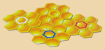 Как играть? 2 игры в одной коробке. Игра на лицевой стороне планшета. В центр игрового поля устанавливается декорация «Улей». Фишки-пчелки расставляются на маленьких цветках соответствующего цвета. Все жетоны переворачиваются капельками вниз. Это игровой банк. Участники игры передвигают свою фишку по игровому полю («летают с цветка на цветок»). В случае если фишка игрока остановилась на поле-цветке своего цвета, участник берет из банка жетоны — один, если цветок маленький, и два жетона, если цветок большой. Игрок, набравший самое большое количество баллов, становится победителем. Игра на обратной стороне планшета. Дополнительная игра на внимание. Пчелки хорошо потрудились и несут полные корзинки с пыльцой. Помогите пчелкам найти свой улей.
