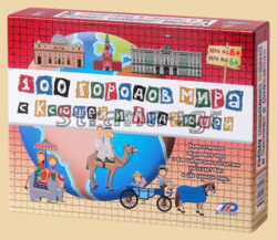 Давно полюбившиеся нам герои Ксюша и Андрюша на этот раз отправляются в путешествие по самым известным и знаменитым 100 городам мира. Игра отличается своей динамичностью, объёмом информации и увлекательным оригинальным форматом. Правила игры уравнивают шансы игроков независимо от их возраста. Вместе с вами, друзья, Ксюша и Андрюша посетят романтичный Париж, неповторимый Нью-Йорк, дождливый Лондон и много других интересных и загадочных мест. Вы обретете знания об истории разных городов мира, их архитектуре, знаменитых местах и достопримечательностях. В окружении соперников по игре, которые так же жаждут победы, вам будет гораздо интереснее открывать карточки с новыми городами и отвечать на вопросы ведущего! Картинки на полях и фасадах помогут вам более точно сформировать представления о городах и запомнить интересные сведения о каждом из них. Пройдите своей фишкой первым от Старта до Финиша по игровой дорожке "100 городов",по очереди правильно отвечая на вопросы карточек. Чтобы выиграть, очень важно обладать хорошей зрительной памятью, ведь многие ответы расположены на соответствующих картинках игрового поля и на фасадах вопросников. Ну и конечно, здесь не обойтись без везения и интуиции: на пути к финишу вас поджидают картинки-ловушки и картинки-помощницы, а на многие вопросы вы можете ответить, полагаясь на логику и интуицию, так как вероятность правильного ответа составляет почти 50%. Если Вы проиграли, не огорчайтесь. Ведь, согласно тестированию, каждый раз, играя, вы запомните и заучите половину не озвученных вами ответов, а если будете очень внимательным, можете обнаружить умышленную информационную ошибку, допущенную в одном из вопросов, и станете обладателем замечательного подарка.