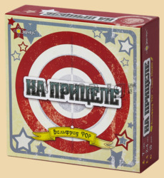 "На прицеле" - это весёлая игра для компании или для одиночной игры. Участники строят башни из кубиков. Самый верхний кубик сбивают в центр стола, где лежат три круглых мишени. Далее всё зависит от того, куда упал кубик, и какое число на нём выпало Игрок либо захватывает мишень, либо забирает кубик обратно. Участник, набравший наибольшее количество мишеней к концу игры, побеждает.