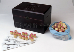 Дефект - деффекты на деревянном ларце (по покраске и лаку) Размер 17 на 27 см Высота 17,5 см Материал ларца: дерево Размер карточки 10 на 23 см Высота бочонка 2,5 см, диаметр 2 см Материал бочёнка: дерево Производитель Россия
