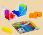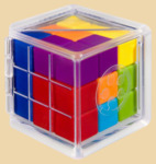 3D-Тетрис. Сможете собрать куб из 6 красочных деталей? Используйте навыки пространственного мышления, логики и дедукции для решения каждого задания! Откройте прозрачный куб, чтобы преобразовать его из футляра для хранения в игровое поле. В буклете с заданиями даны варианты первоначального расположения одной или нескольких фигур. Задача игрока - найти способ уместить остальные фигуры, не перемещая первоначальные из задания. Чем больше фигур уже стоят в начале, тем меньше их у игрока и тем проще задание! Самое простое задание - это когда 5 из 6 фигур уже стоят на своем месте и нужно только добавить оставшуюся 1 на её место. Далее в начале стоят уже 4 фигуры, затем 3-2-1.
