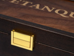 Набор для игры в петанк (бочче) на 6 шаров в буковом кейсе Состав набора: - 6 металлических шаров для игры в петанк (бочче), цвет чёрный - буковый кейс - веревочка для измерения расстояний - деревянный или пластиковый шарик (кошонет) Рулетка в комплект не входит! Размер букового кейса 20 на 28 см, высота 9,5 см Вес шара 715 гр, диаметр шара 67 мм Надпись сверху кейса выполнена в технике маркетри из таких пород дерева как орех и ясень Название техники маркетри произошло от французского слова marquer – расчерчивать, размечать. Маркетри представляет собой один из видов инкрустации по дереву, при котором мозаичный узор выполняется из тонких пластин разных пород дерева – шпона. Бук – представитель лиственных пород деревьев, произрастающий в умеренных широтах Европы, Азии и Северной Америки. Бук наряду с дубом относится к ценным породам дерева. Древесина бука сходна по некоторым физико-механическим свойствам с дубовой. Имеет красивую текстуру, белую с желтовато-красным оттенком окраску. Она прочная, плотная, твердая, достаточно легко гнется, режется, обрабатывается лаками и красками. Вес набора для игры в петанк (бочче) - 5 кг Производитель: шары - Китай, кейс - Россия