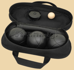 Набор для петанка из 3 шаров в нейлоновой сумке В наборе: - 3 металлических шара; - нейлоновая сумка; - рулетка на 1м для измерения расстояний; - деревянный или пластиковый шарик (кошонет) Размер сумки 9 на 9 см, длина 23 см Вес шара 715 гр, диаметр шара 67 мм Вес набора 2,25 кг Производитель Китай
