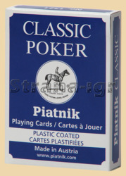 Настоящая классика. Покерный размер 63х89 мм, стандартный индекс, классические лица и пластиковое покрытие! Колода состоит из 55 карт Карты с пластиковым покрытием Размер карт - длина 88,9 мм, ширина 63,5 мм ("покер" размер) Стандартный индекс Синяя рубашка Производитель Австрия (Piatnik)