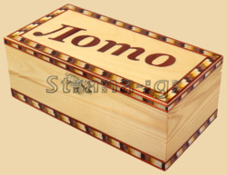 Размер ларца 13 на 26 см, высота 8 см Материал корпуса ларца - сосна, сверху ларца нанесён рисунок в виде надписи "ЛОТО", в технике маркетри. Снаружи ларец покрыт глянцевым лаком. Производитель Россия
