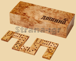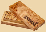 Домино из карельской берёзы - это эксклюзивный и дорогой подарок важному для вас человеку. Такой подарок не оставит его равнодушным! Очень красивая текстура дерева и оригинальный внешний вид подчёркивают важность и эстетичность данного подарка. Размер шкатулки для домино 8 на 19 см, высота 4,5 см Размер фишки для игры в домино 22,5 на 47 мм, толщина 7 мм Материал шкатулки для домино - карельская берёза Материал фишек для домино - карельская берёза на лицевой поверхности и шпон венге на нижней поверхности фишек Береза карельская - это разновидность Березы повислой. Карельская береза является аномалией, названной синдромом ямчатости стебля, и поэтому в природе встречается относительно редко. Её естественный ареал простирается от западной части Норвегии и Швеции на юго-восток Карелии, на южную часть стран Балтии, Польши и Беларуси. Древесина очень декоративна, напоминает деревянный мрамор. Имеет множество волнистых переливов светло-желтых оттенков с темными полосками. Невероятно твердая, вязкой структуры. Венге - редкая и ценная порода тропической древесины, получаемая из дерева Венге произрастающего в Центральной Африке. Древесина венге – одна из самых лучших и дорогих, и не только благодаря своему изысканному цвету и «грубоватой» текстуре, а также из-за физических свойств. Она устойчива к удару, давлению и изгибу. Вес домино 400 гр. Производитель Россия (Карелия)