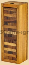 Высота 16 см Размер брусков 4,5 на 1,5 на 0,8 см Размер основания (в собранном виде) 6,3 на 5,5 см В комплекте 54 бруска Материал тропическое дерево Количество игроков 2-4 Производитель Индонезия