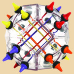 Эта трехмерная головоломка состоит из прозрачного куба со специальными прорезями и эластичных нитей, на концах которых закреплены цветные пластиковые кнопки. Всего 12 нитей = 24 цветных кнопки, по 8 кнопок каждого из 3 цветов. В исходном состоянии нити сгруппированы по цветам, так что на каждой стороне куба находятся кнопки только одного цвета. При этом, на противоположной стороне куба находятся смежные кнопки того же цвета, т.к. цвета кнопок, закрепленных на одной нити с обеих сторон одинаковые, а в исходном состоянии нити одного цвета растянуты параллельно друг другу между противоположными сторонами куба. В результате, ни одна из 12 нитей не пересекается с другими и все они находятся либо в параллельном, либо в перпендикулярном состоянии. Прорези на поверхности куба расположены и соединены между собой таким образом, что каждую из 12 нитей можно расположить в любом месте, осуществив замену с другой нитью посредством перемещения кнопок нитей по прорезям куба.